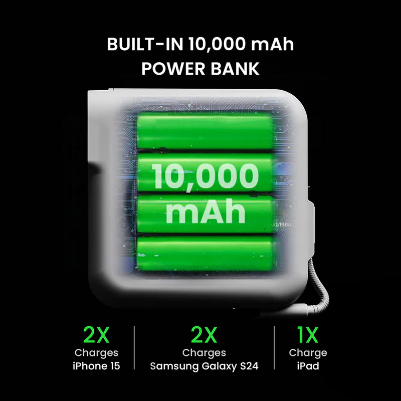 - 3 in 1: 2 x Type-C USB + 1 x Wireless Charging Module+10,000mAh capacity